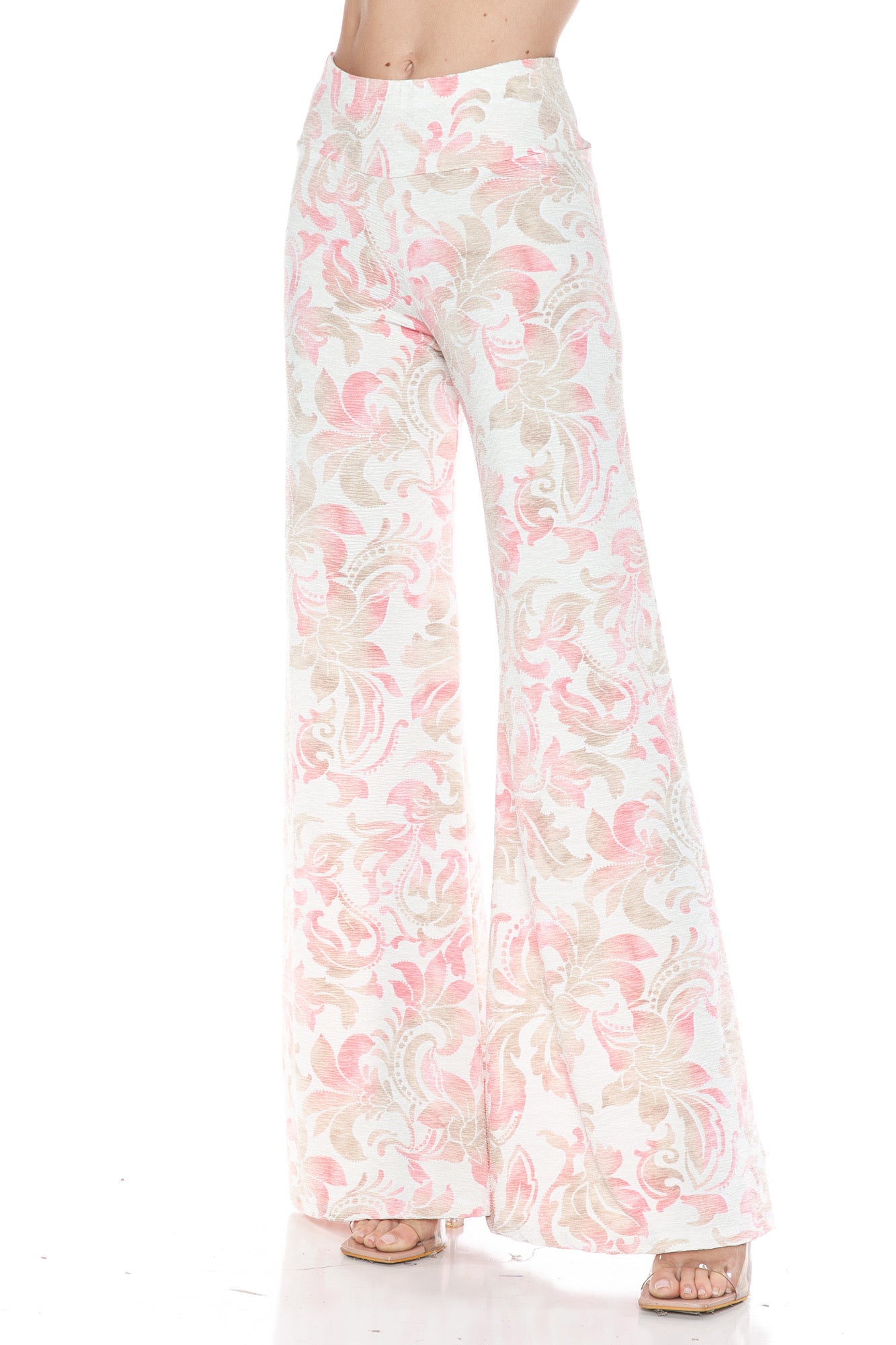 Soft, feminine, and effortlessly elegant—these wide-leg pants are designed to make a subtle statement. Featuring a delicate floral-inspired print in soft pinks and neutrals, they bring a light, romantic feel to your look. The high-waisted fit flatters your silhouette, while the flowy fabric creates graceful movement with every step. Perfect for dressing up or keeping it relaxed, these pants offer a chic blend of comfort and style.