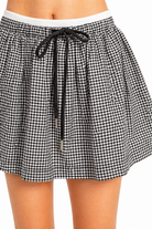 This playful two-piece set features a classic gingham print for a timeless, effortless look. The cropped cami top is designed with delicate spaghetti straps, a button-front detail, and a flattering peplum-style hem that adds a feminine touch. The matching skirt offers a comfortable elastic waistband with an adjustable drawstring for the perfect fit, finished with a soft, flowy silhouette. Cute, casual, and easy to wear, this set is perfect for warm days, brunch outings, or everyday styling.