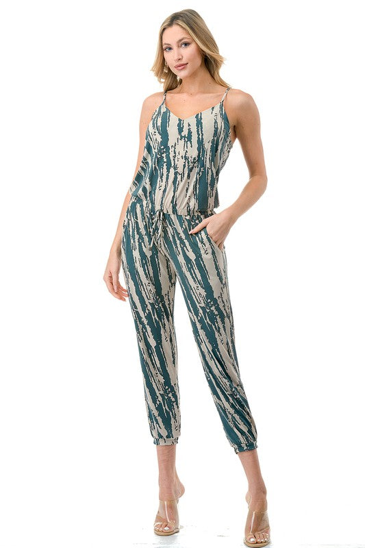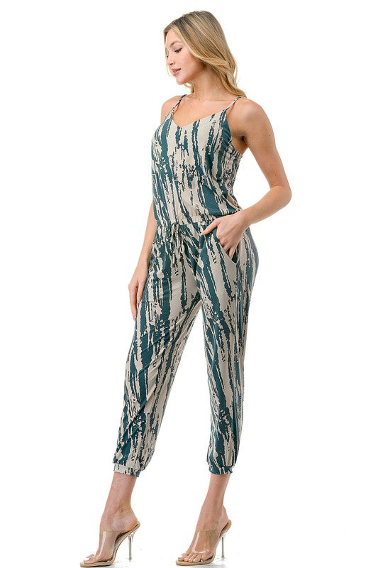 Embrace casual-chic vibes with this stylish printed tank jogger-leg jumpsuit. Crafted from soft, stretchy fabric, it provides both comfort and a flattering fit. The sleeveless tank-style bodice offers a versatile look, while the jogger-style legs lend a relaxed yet trendy silhouette. Effortlessly transition from day to night by pairing it with sneakers for a laid-back feel or dress it up with heels and accessories for an evening out. Perfectly blending style and ease, this jumpsuit will quickly become your go-to favorite.