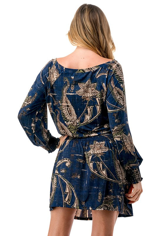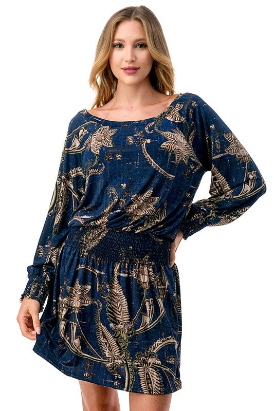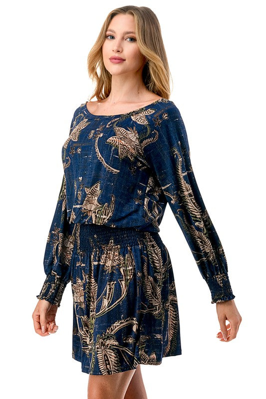 Enchant your way through any event in this stunning off-shoulder dress. Featuring charming smocked detailing that hugs your curves perfectly, it highlights your figure while ensuring all-day comfort. The playful printed pattern and graceful long sleeves add a stylish flair, while the off-shoulder neckline provides a touch of romantic sophistication. Ideal for brunch dates, evening outings, or festive occasions, this dress captures effortless elegance with a breezy, feminine appeal.