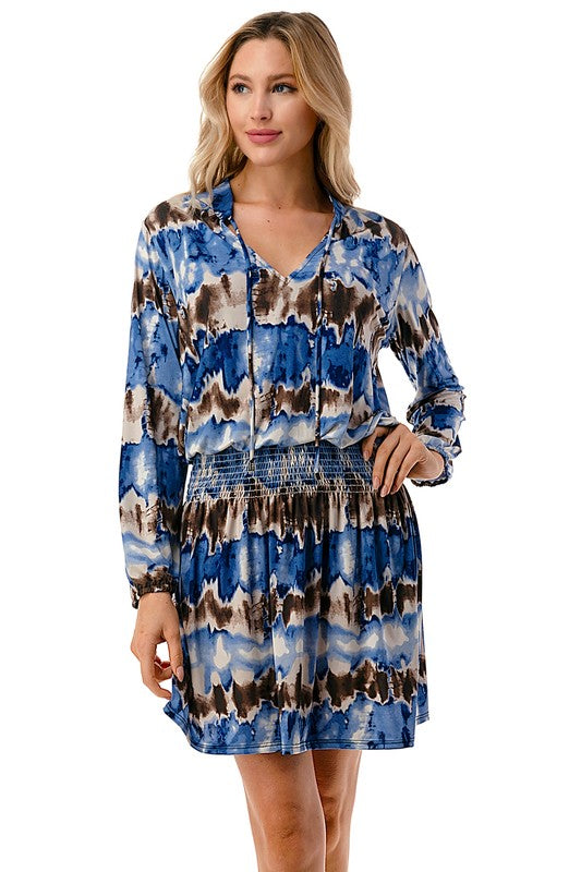 Turn heads in this effortlessly chic Smocking Waistline Long Sleeve Dress, featuring a flattering smocked waist that defines your silhouette with ease. Crafted from soft, breathable fabric with an allover print, this dress blends comfort and style for any occasion. The long sleeves add a graceful touch, making it perfect for everything from brunch dates to casual evenings out. Pair with your favorite sandals or boots for a look that’s timeless and versatile.