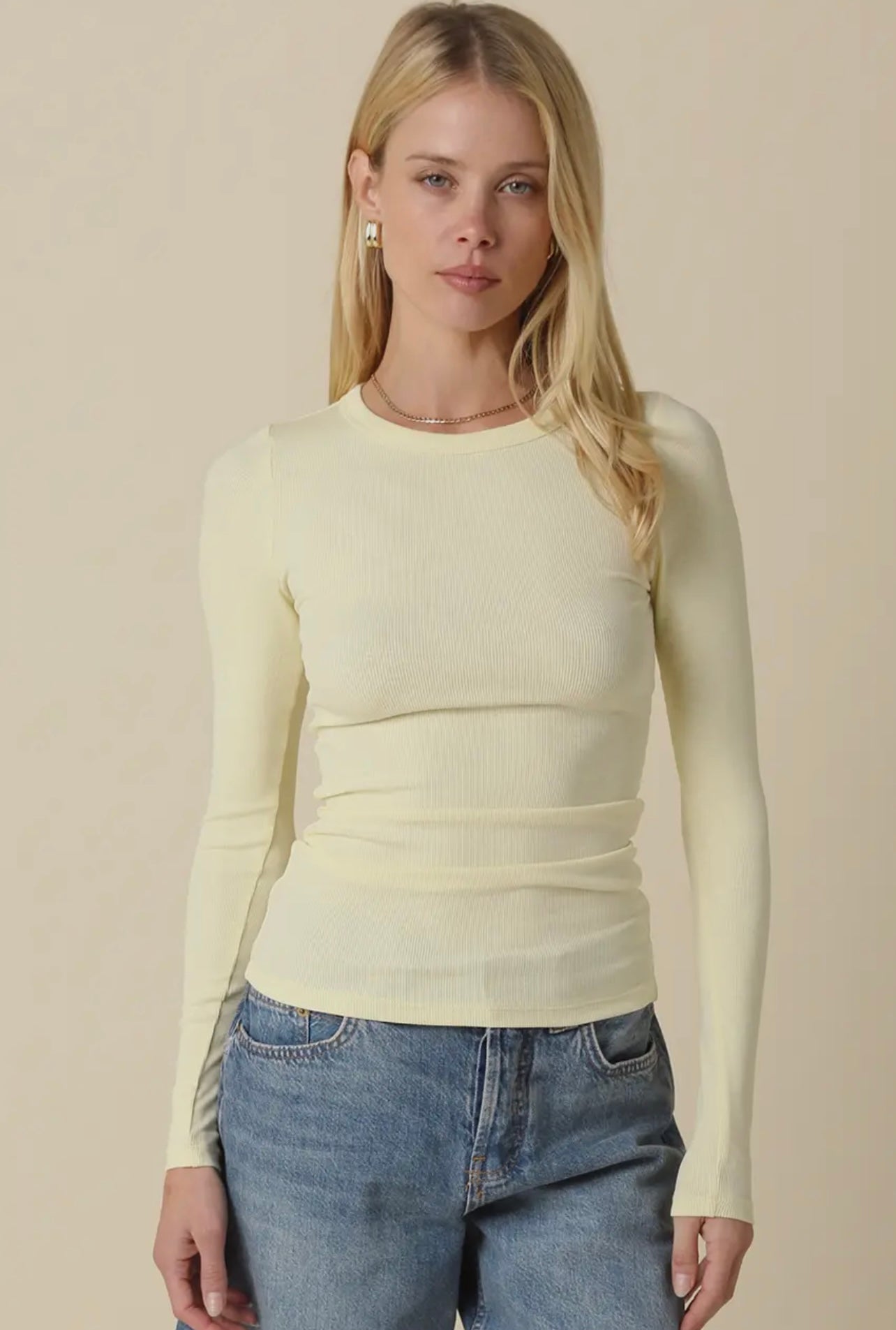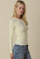 This long sleeve ribbed top is a timeless essential designed for effortless wear. Crafted in a soft, stretchy fabric, it features a classic crew neckline and a streamlined silhouette that moves comfortably with you. Perfect for layering or wearing on its own, this versatile top pairs seamlessly with denim, tailored bottoms, or skirts for an elevated everyday look.