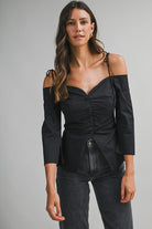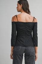 This off the shoulder top brings soft romance to a classic silhouette. Designed with a flattering sweetheart neckline, it features adjustable tie straps for a customizable fit and a button-down front for a polished finish. The off-shoulder design beautifully highlights the neckline and shoulders, making this top perfect for date nights, brunch plans, or warm-weather outings styled with ease.