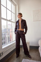 Command attention in this chic two-piece set that blends structure with effortless style. The cropped top features a tailored collar, sleek front zipper, and long sleeves for a polished yet modern edge. Paired with high-waist, wide-leg pants that elongate the silhouette and offer a flattering, comfortable fit, this set transitions flawlessly from daytime sophistication to evening allure. Dress it up with heels for a night out or keep it casual with sneakers for an elevated everyday look.