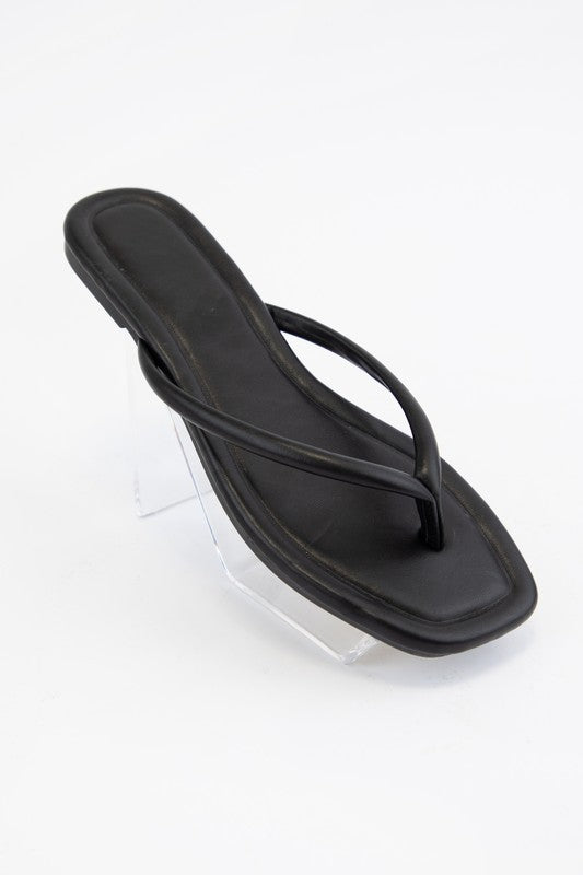 Minimalist and modern, this square-toe thong sandal features padded straps for a bold yet comfortable fit. With its easy slip-on style and lightly cushioned footbed, it’s designed for all-day wear without compromising on style. The perfect finish to any warm-weather look.