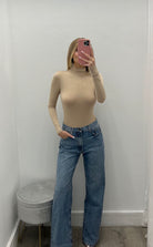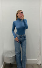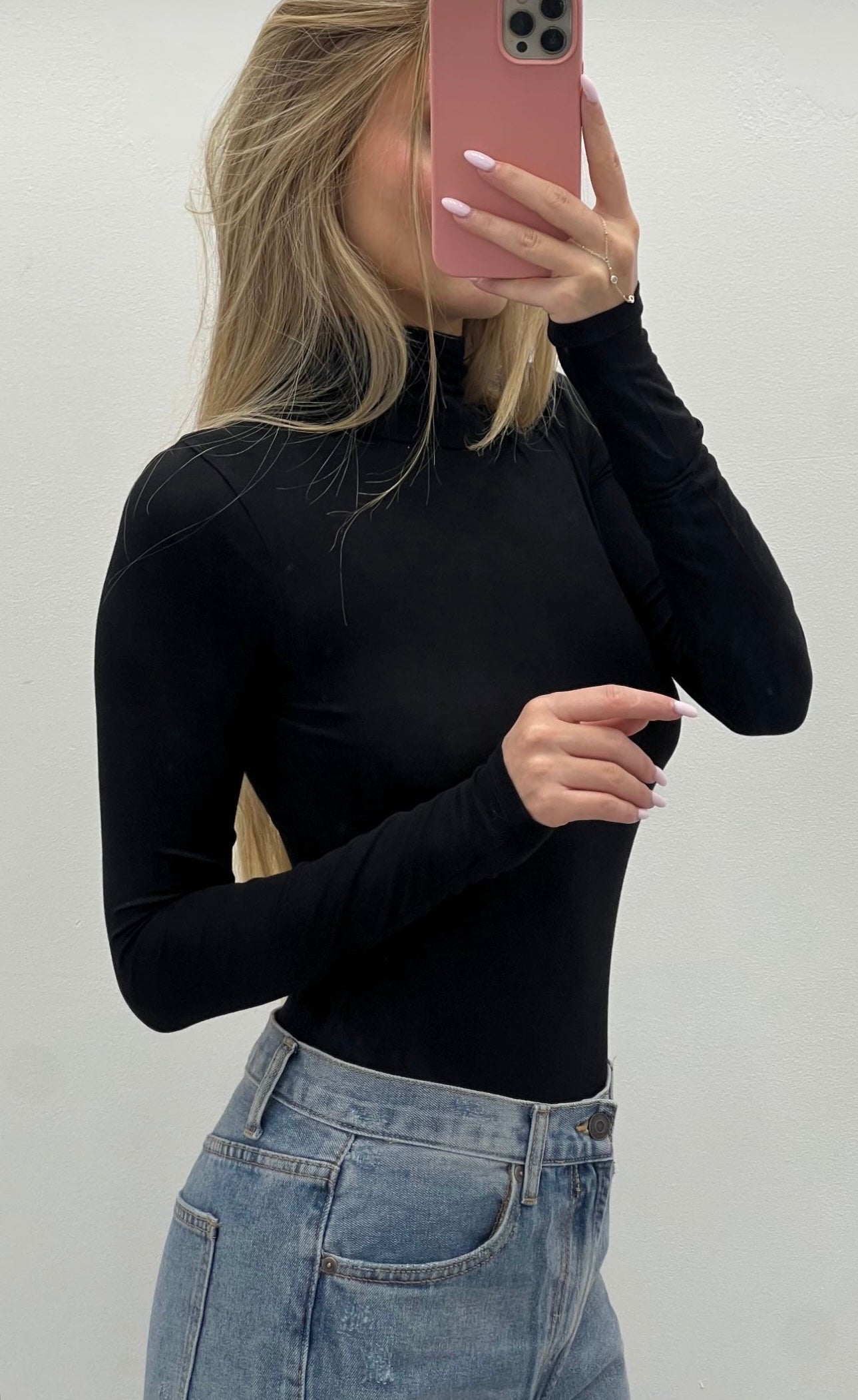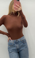 Any outfit is complete paired with our sleek Brielle Bodysuit. A turtleneck bodysuit that adds an element of sophistication to any casual look. The choice of a turtleneck not only highlights the graceful neckline but also provides a chic contrast to any outfit. Available in a variety of colors.