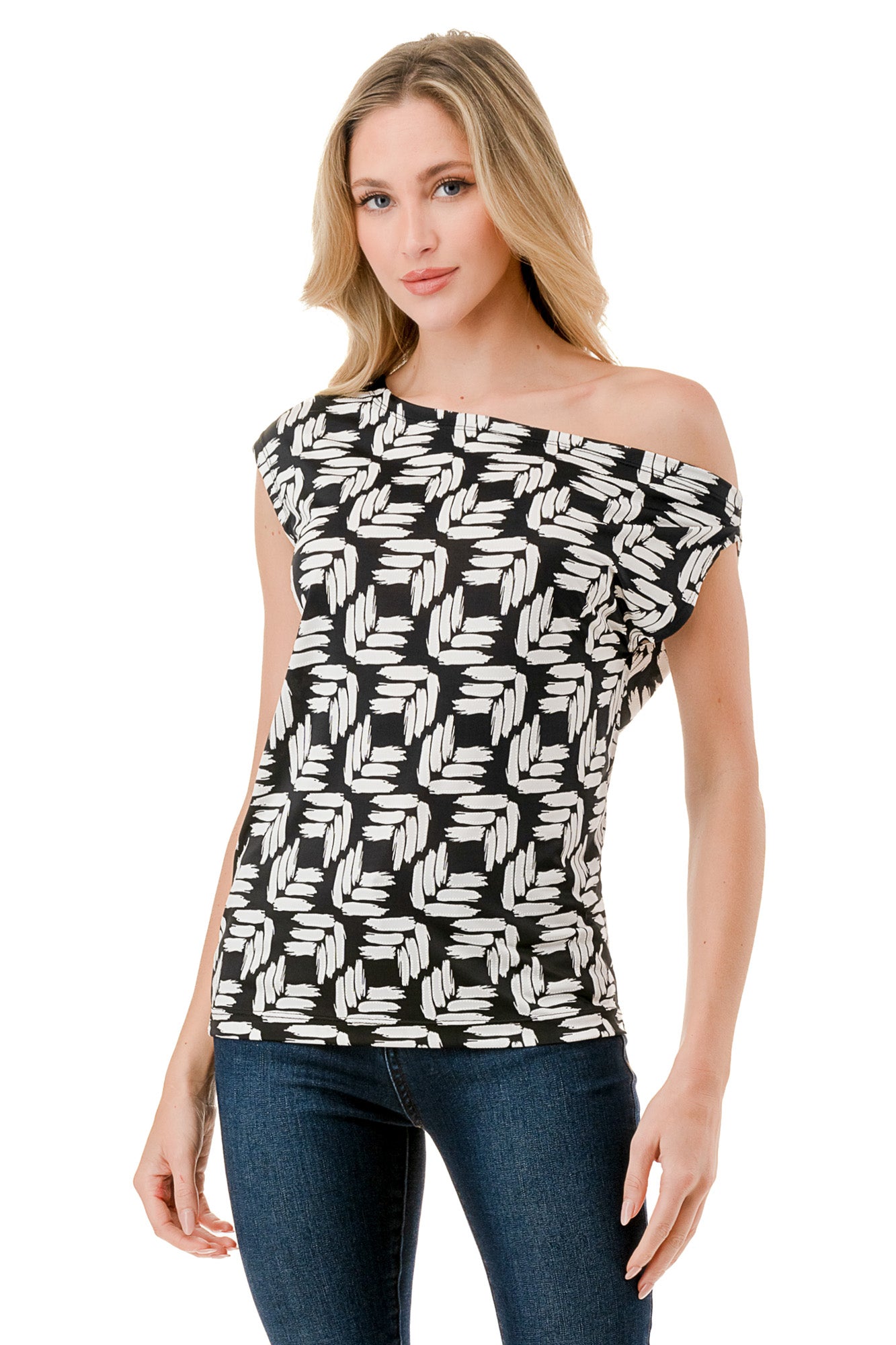 Add a touch of effortless charm to your wardrobe with this boat-neck, off-shoulder printed top. Crafted from soft, stretchy fabric for maximum comfort, this stylish piece gently highlights your neckline and shoulders, providing a chic yet casual look. The eye-catching print adds a pop of personality, making it perfect to pair with jeans, shorts, or skirts for versatile styling from daytime adventures to evening outings.