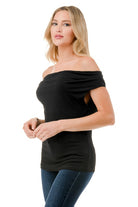 Effortlessly chic and irresistibly stylish, this off-shoulder top is the perfect addition to your wardrobe. Featuring a flattering neckline that gracefully showcases your shoulders and short sleeves for versatile comfort, this piece is crafted from soft, stretchy fabric for a figure-hugging fit. Ideal for casual brunches, date nights, or everyday wear, pair it with jeans, skirts, or shorts for a look that's both contemporary and timeless.