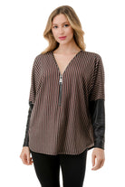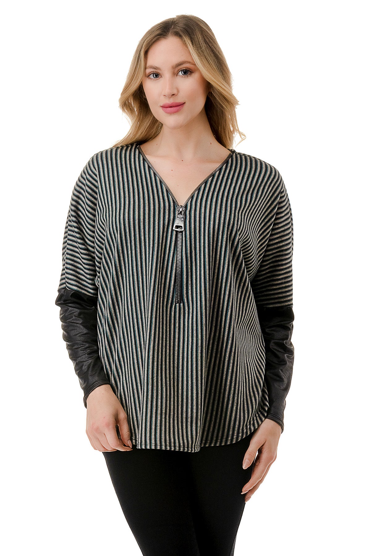 Add a touch of modern sophistication to your wardrobe with this stylish dolman sleeve zipper top. Featuring relaxed dolman sleeves that provide comfort and effortless chic, this top is elevated by a sleek zipper detail, lending a contemporary edge. Perfectly versatile for day or night, pair it with jeans for a casual yet polished look, or dress it up with tailored pants for an evening out.