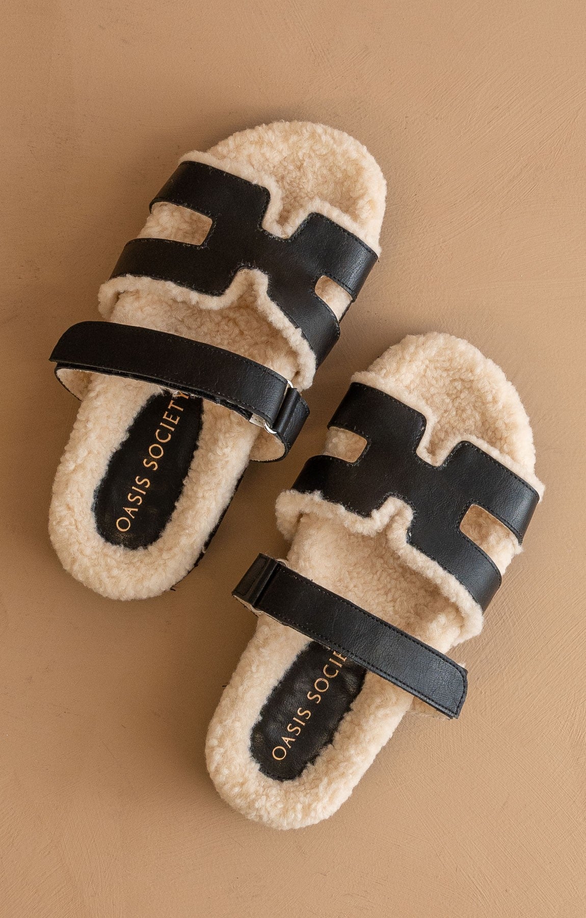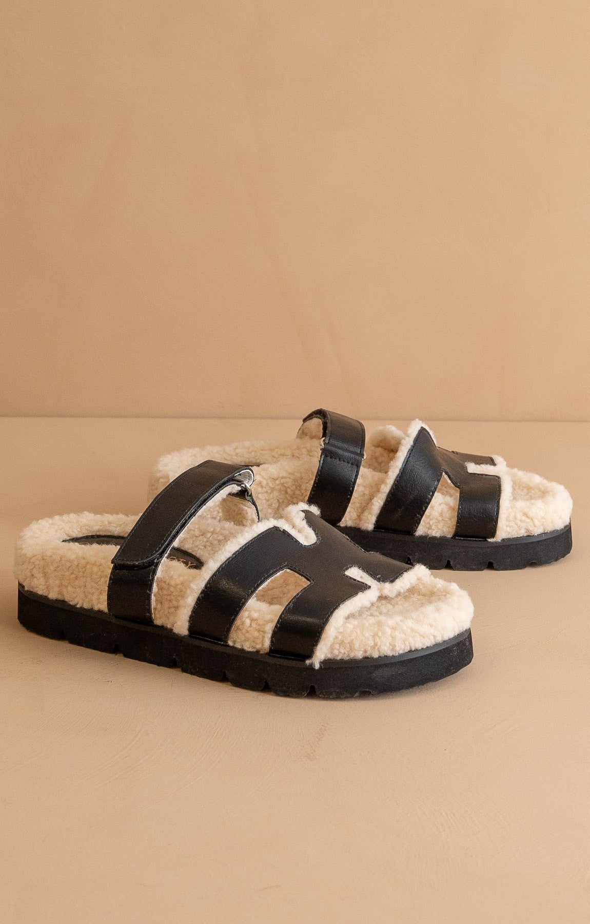 Elevate your summer style with The Alpine sandals. These cozy yet luxurious sandals feature a plush faux shearling lining and molded footbed, providing ultimate comfort for your wardrobe. The perfect blend of warmth and style, with a 0.75" heel and slip on closure.