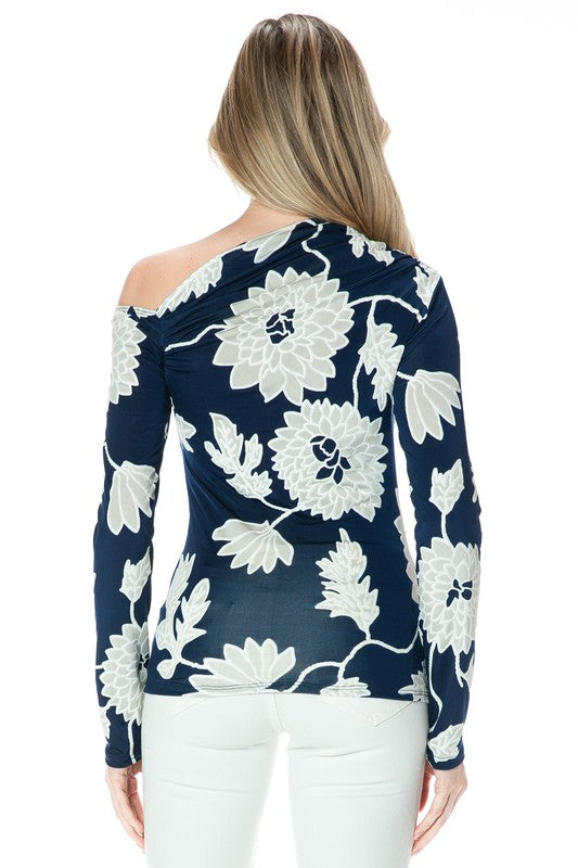 Step into effortless elegance with this stunning open-shoulder top. Featuring eye-catching ruched detailing and graceful long sleeves, this top beautifully combines contemporary style with a touch of romance. Crafted from soft, stretchy fabric, it ensures comfort while flattering your silhouette. The delicate floral print adds feminine charm, making this the perfect piece to elevate your look for casual outings or special occasions alike. Pair it with jeans or tailored trousers for a chic, versatile ensemble.